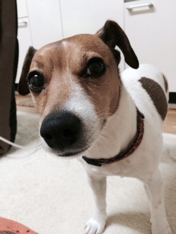 我が家で飼っている、ジャックラッセルテリアのマイロ(雌・10歳)との時間です。猟犬の犬種なので、元気いっぱい! 毎日たくさんの散歩が必要です。休日は1時間以上山を登ったり川で遊んだり、私の運動不足解消にも一役買ってくれています。