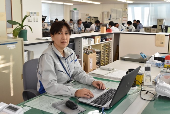 小林さんが出向先で期待されていることの一つが、女性の活躍推進です。出向先の中電配電サポート株式会社には、女性交渉員が2名在籍中。小林さんは自らの経験を伝えるとともに、県内6営業所の女性事務社員が快適に働けるよう、環境改善に努めています。工具の扱いはお手の物で「ついたあだ名は“小林工務店”!この前は女子トイレに棚を作り、目隠し用の箱を置きました。こんなこと言いにくいですよね、男性上司に」。女性技術者1期生の小林さんは、注目される存在でした。「どこへ異動しても私は有名人」。不便も多くありましたが、嬉しい事も多かったとか。「配属の挨拶直後から『お前がサトコか!』と親しんでいただいてます」