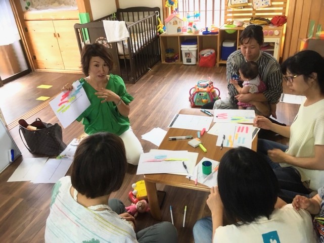 住宅・商用施設の新築営業や、リフォームサロンの店長など、さまざまな仕事を経験した加藤さんに転機が訪れたのは42歳の時。「第2子を妊娠・出産しました。昔よりずっと充実した社内制度を、この時は利用させてもらいました」。育休中に加藤さんが注目したのは、自身の経験を生かした社会貢献活動。乳幼児ママの社会参画に取り組む鈴鹿市のNPO法人『マザーズライフサポーター』の活動にボランティアとして参加し、「会社勤めを続けたいママの力になれるはず」と気づいたといいます。2017年10月に育休ママが集まる座談会『育休カフェ』を開催し手応えを感じた加藤さんは、定期開催を決定。毎月第4木曜日に『育休カフェ』を開いています。