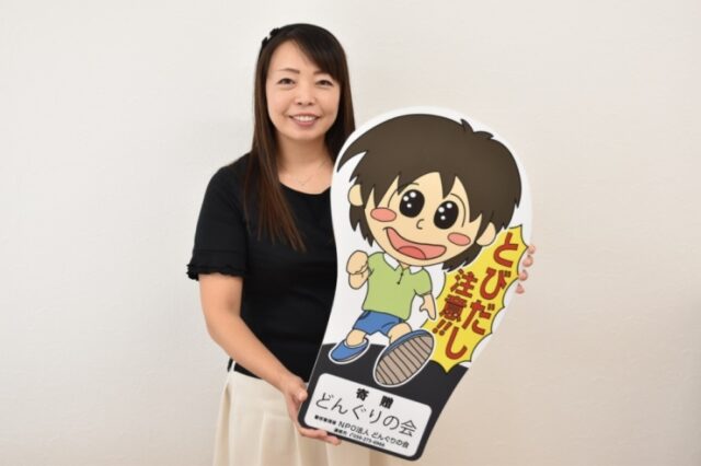 学童保育設立を決意した池田さんは、利用料を試算し頭を抱えました。「そんな時、ちょうど道路の“飛び出し看板”(飛び出し注意喚起看板)が目に入りました。それはボロボロに朽ちて、見捨てられていました。電柱みたいに広告を入れたらいいのに」。池田さんは早速行政に確認の上、看板の設置・維持管理を行うことに。地域の企業に協賛してもらい、その収益を学童保育事業に充て、利用者の負担を軽減。協賛企業は約100社に、設置看板は約350体になりました。企業は社会貢献に加え、社員の福利厚生として『どんぐりの家』を利用できます。このプランは全国商工会議所女性会連合会の第14回『女性起業家大賞』特別賞ほか数々の賞に輝きました。