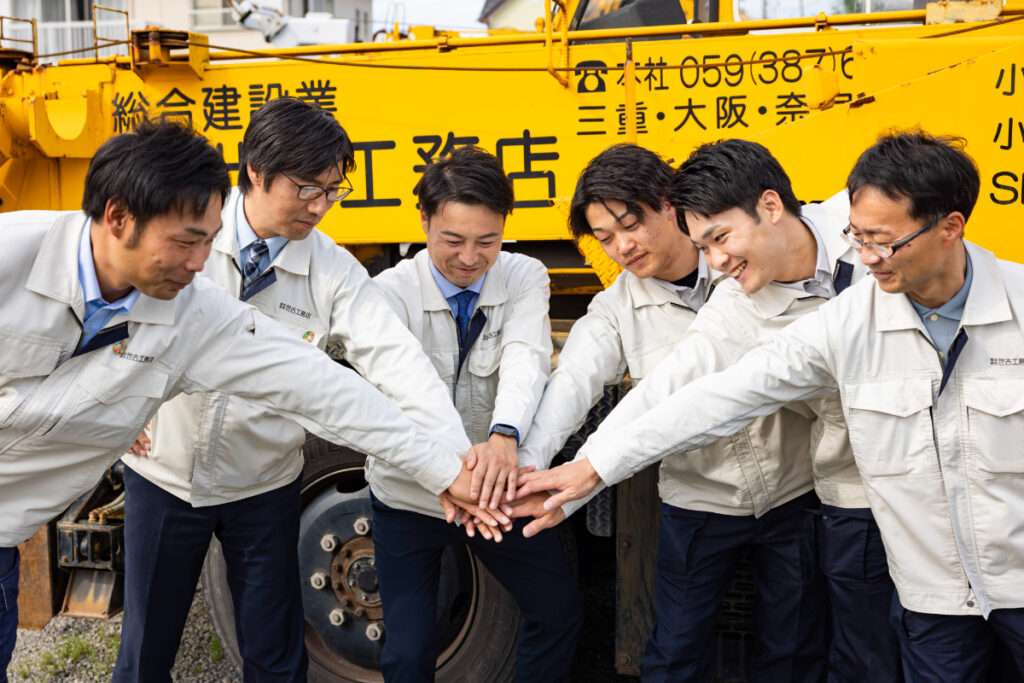 『世古工務店』の主な事業は、建築物の地盤補強と大手ハウスメーカーの建築工事請負です。特に独自の地盤補強工法『SEKOスクリューパイル工法』は、国土交通大臣の認定を取得しました。現場で扱う重機はオリジナル。そして、そのスクリューパイルを開発から製造まで一貫して自社で行っています。